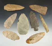Set of 8 Blades and Knives found in various locations. The largest is 3 5/8". |