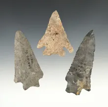 Set of 3 Nice points found in Licking Co., Ohio. The largest is 3 3/8". |