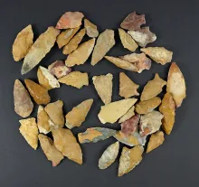 Set of 40 colorful points found on the Eastern Shore and made from Cobble Jasper. |