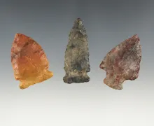 3 Points found in Knox Co., Ohio, in the 1990's. Largest is 1 7/8". Ex. Hooks Collection. |