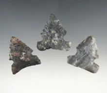 Three Wide Base Coshocton Sidenotch Points found in various counties in Ohio. |