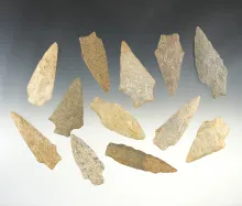 Set of 12 Triangle points found around Martha's Vineyard. The largest is 1 3/8". | MASSACHUSETTS | 120.00 | |