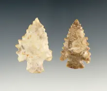 Two finely serrated points, one Flint Ridge and one Pipe Creek material. Ex. Dick Johnson. |