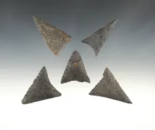 Set of 5 finely made Triangle points found in the Eastern U.S. The largest is 2". |