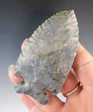 3 5/16" Archaic Thebes - Coshocton Flint, found in Tuscarawas Co., Ohio. Ex. Jim Hahn, Todd Harding.