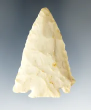 2 1/4" Archaic Decatur made from cream flint with restoration to one ear. Found in Warren Co., Ohio.