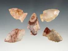 Set of 5 Ohio points - colorful Flint Ridge flint. |