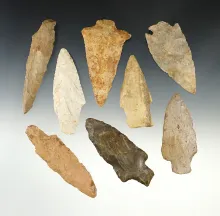 Set of 8 well styled Oregon points. Largest is 3/4". |