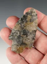 2 9/16" Stemmed point made from an nice speckled Coshocton Flint. Found in Wayne Co., Ohio. |