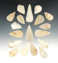 Set of 18 Leaf Points made from Quartz. Found in the Eastern U.S. The largest is 1 13/16". | 70.00 | ||