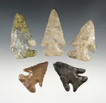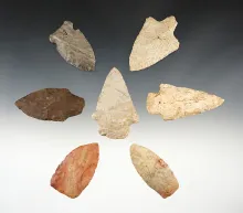 Set of 6 well patinated points found in Harrison Co., Indiana by the Bob Crosier family. |