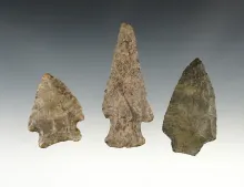 Set of 3 well patinated Midwest points. The largest is 3 1/4". |