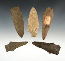 Set of 5 assorted Northeastern points in good condition. The largest is 3 13/16". |