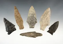 Set of 6 assorted Northeastern points in good condition. The largest is 2 15/16". |