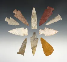 Set of 10 nice points found in various locations. The largest is 2 3/8". |