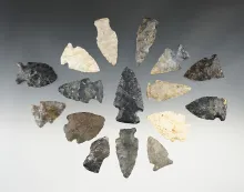 Set of 16 assorted points found in Ohio. A great variety of types. The largest is 2 3/16". OHIO 45.00