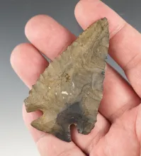 1 15/16" Stemmed Paleo Dart made from rare Moss Agate. Found in Perry Co., Ohio. |