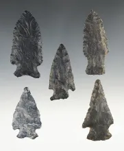 Set of 5 nice Coshocton points found in Ohio. The largest is 2 5/8". |