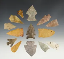 Set of 14 Assorted points from various states. Most are in excellent condition, largest is 1 3/4". 85.00
