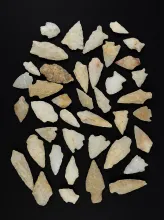 Group of 25 Assorted Arrowheads made mostly from Obsidian. New Mexico. Largest is 1 3/16" |