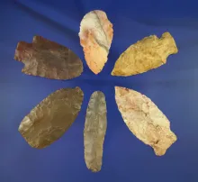 Group of six assorted Midwestern arrowheads, largest is 2 1/2". |