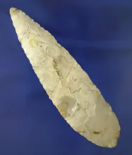 Thin and nicely flaked 3 9/16" Covington Blade with nice mineral deposits-Texas. Ex. Ferrell TEXAS