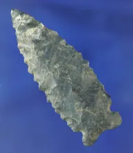 Excellent edge serrations on the Sidenotch 2 5/16" archaic dart point. |