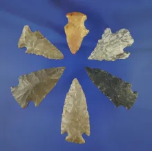 Set of six assorted Midwestern arrowheads and nice condition, largest is 1 7/8". |