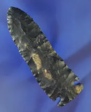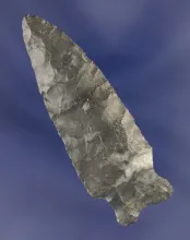 2 1/8" transitional Paleo Stemmed dart point found in the 1950s in Knox Co., Ohio Coshocton Flint. |