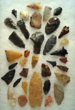 Large group of assorted flaked projectile points and knives found in the western U.S. |