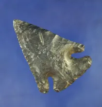 3" nicely beveled Coshocton Flint Notched Base Dovetail found in Hancock Co., Ohio. Ex. Ed Fronk. |