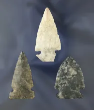 Set of 3 Assorted Ohio Arrowheads, largest is 1 3/4". |