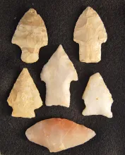 Set of six Midwestern arrowheads and nice condition, largest is 2 3/16". |