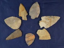 Large group of 12 assorted ancient Indian Arrowheads and Knives made from Jefferson City chert found