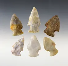 Set of 6 Flint Ridge Hopewell points found in Ohio. All are Ex. Lar Hothem collection. |