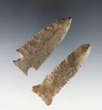 Pair of Tennessee points with minor modern tip rechipping on both. The largest is 3". From the collection of the late Walt McIntyre. |