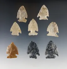Set of 8 nicely made Intrusive Mound points found in Ohio. The largest is 1 1/2". |