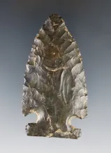 Excellent serrations on this colorful 1 15/16" leaf point recovered in Kansas. KANSAS 55.00