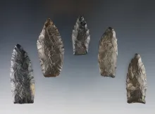 Set of 5 Paleo Lanceolates found in Summit and Stark Co., Ohio. Bennett COA. | OHIO | 180.00 | |