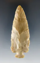 Nicely beveled 4" Archaic Cornernotch made from patinated Hornstone. Found in Kentucky. |