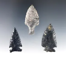 Set of 3 nice Coshocton Points found in West Bedford, Coshocton Co., Ohio. The largest is 2 1/16". |