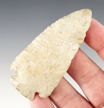 Exceptional flaking on this 2 7/16" Archaic Cornernotch made from Hornstone. Kentucky. |