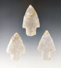 Set of three late Adena Culture Points made from Flint Ridge Flint Chalcedony. Largest is 2 7/16". OHIO 130.00