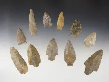 Set of 11 assorted points & knives found in various locations. The largest is 2 15/16". 30.00