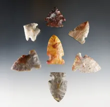 Seven colorful Archaic points found in Ohio. Largest is 1 1/2". | OHIO | 160.00 | |