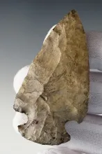 3 3/16" Eden made from patinated and glossy gray Chert. Nebraska. Ex. Tom Davis.2 COA's. NEBRASKA 325.00
