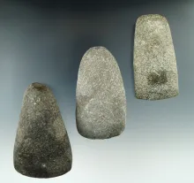 Set of three hardstone Celts found in Ohio, largest is 4 3/8". |