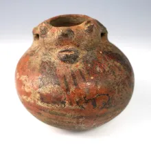 2 5/8" tall x 3" wide painted Human Effigy bottle found in Costa Rica. 70.00