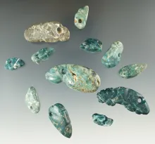 Set of 12 pre-Columbian beads and effigy pendant found in Mesoamerica. 170.00
