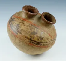 Nicely painted 5 1/2" Wide x 4 1/2" Tall Dual Spout painted Pottery Vessel from Panama. |